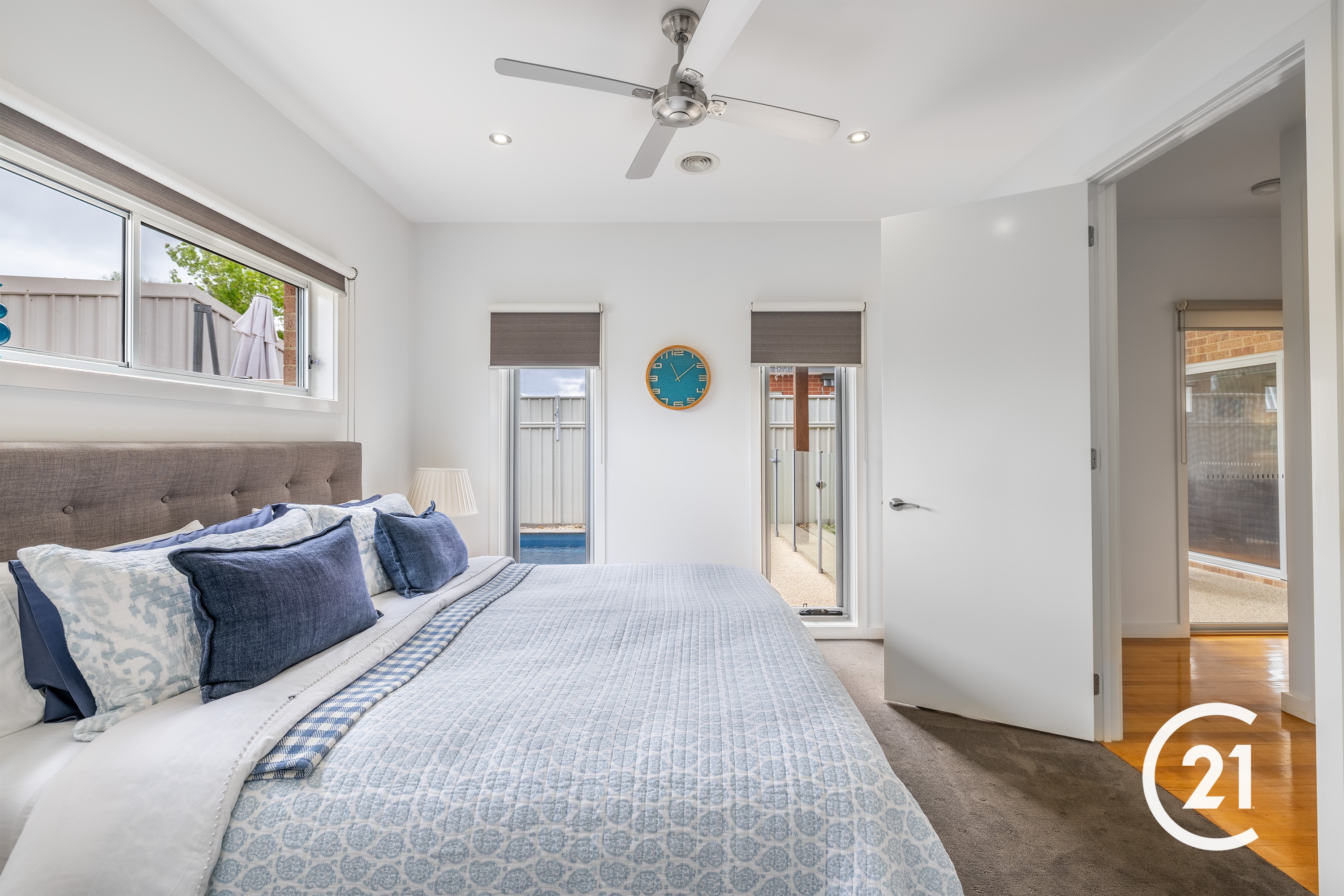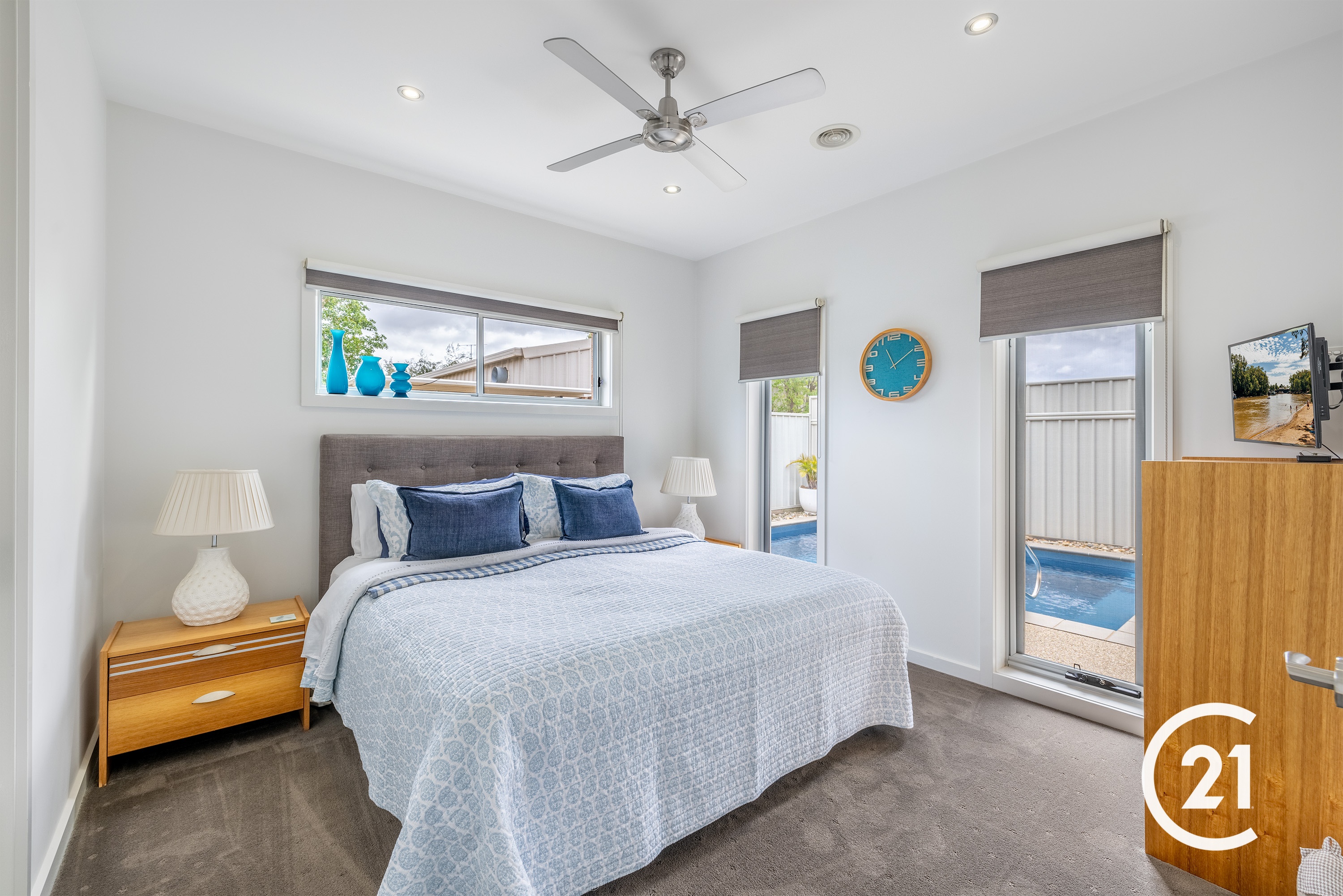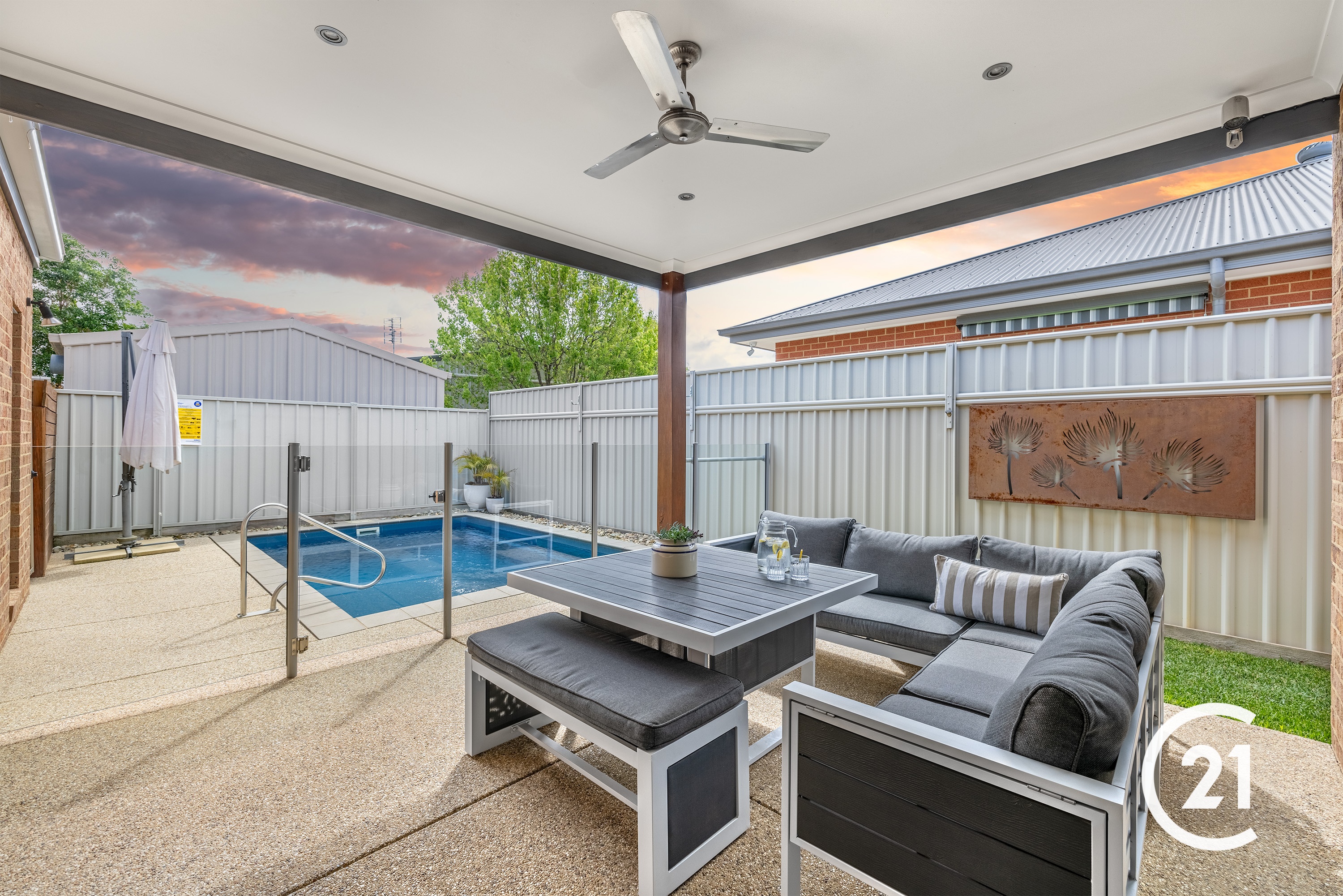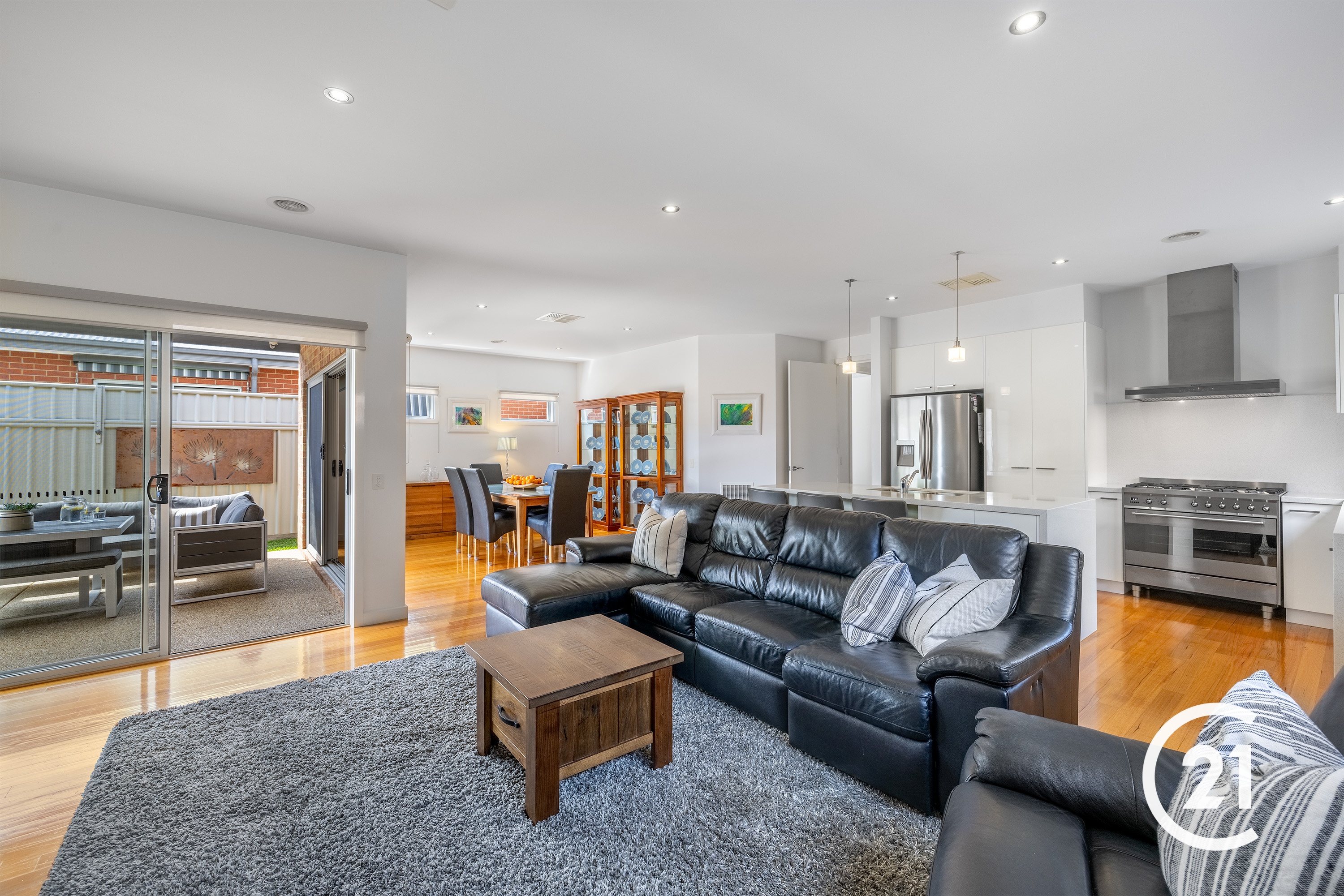 As you enter the home, you will be immediately assured of the quality of the build, solid hardwood floors under foot and high ceilings with square-set plaster leave an impression. The first bedroom to your left is a good-sized room with a built-in sliding robe and further in on your right, bedroom two awaits. Both are serviced well by a spacious main bathroom, separate toilet and powder room. The master bedroom sits at the rear of the home, away from the street, with views over the pool. It also has a large walk-in robe and an ensuite with 1500mm shower. The main living area of the house combines the kitchen dining and living areas together into one huge open space. The well-appointed kitchen boasts high end Smeg and Miele appliances, 40mm stone benchtops with waterfall ends, and plenty of storage. While the living and dining spaces overlook the outdoor entertaining area and pool. Combined with the two glass stacker doors this seamlessly combines the inside and outside entertaining areas. The in ground pool is solar heated and the glass panel fencing provides unobstructed views from all parts of the kitchen, living and dining areas, perfect for supervising the kids or grandkids.This low maintenance home with 2-car garage, 2kw solar system, ducted heating, air conditioning and ambient gas wall heater are some of the conveniences this beautiful home presents to the next owners. 115m to Moama Bowling Club 450m to Pharmacy and local shops 50m to Moama Pool 350m to Border Inn 450m to Moama Market