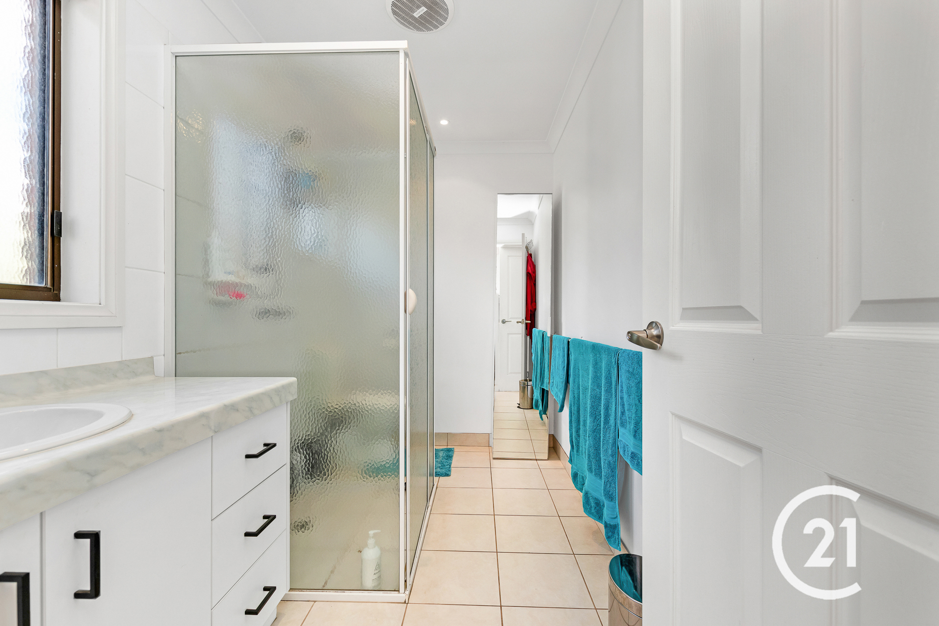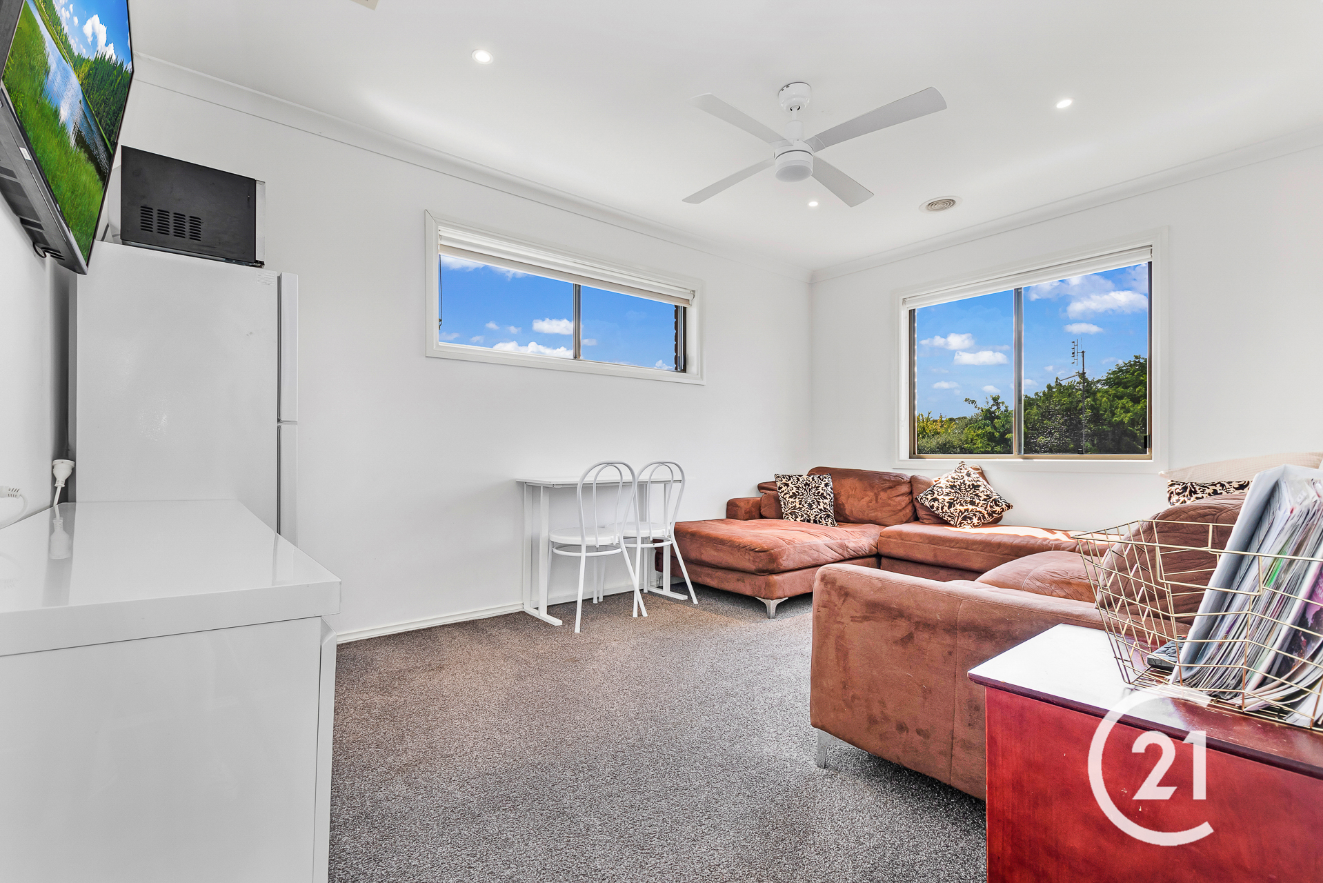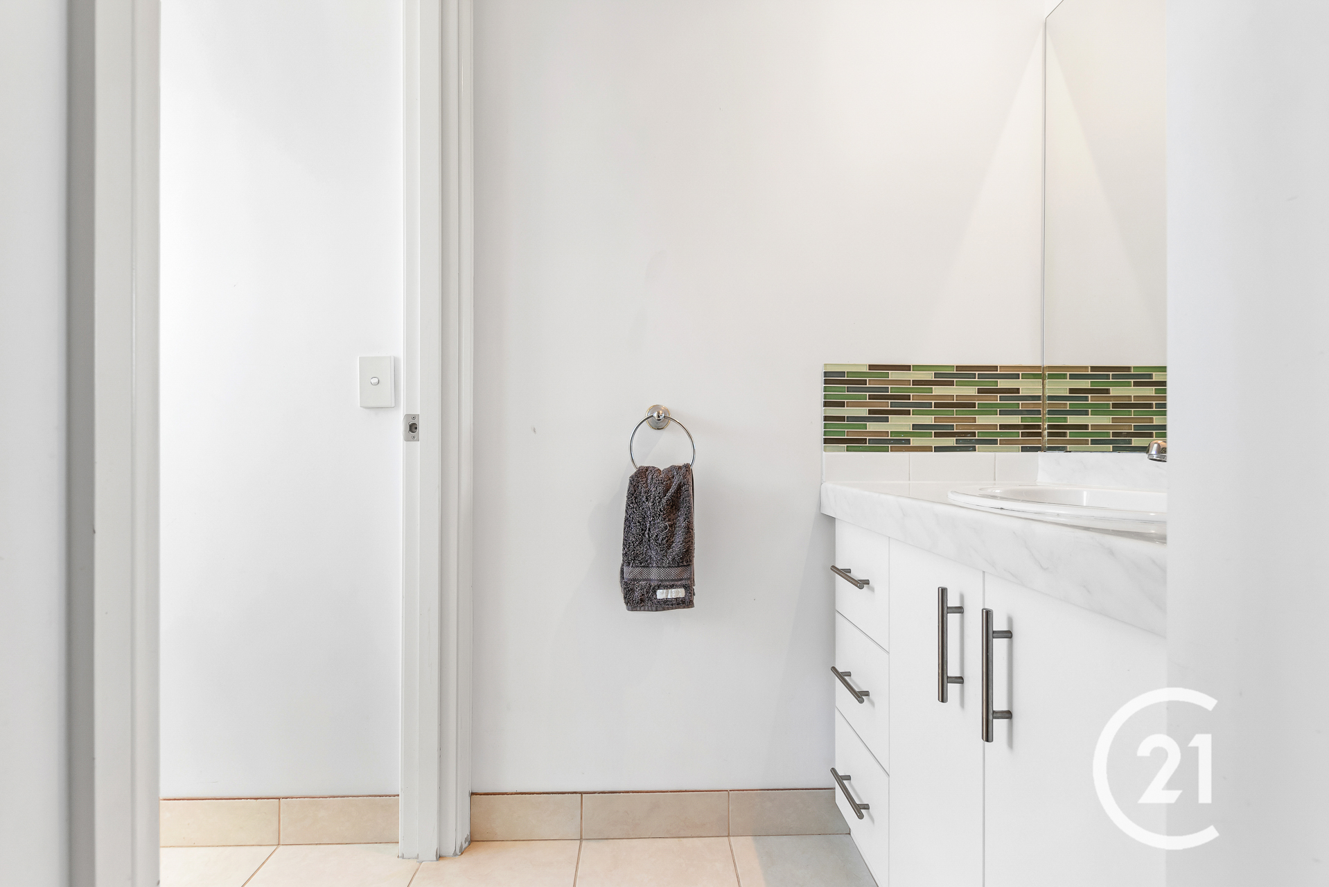 The entrance to upstairs can be closed off with a sliding door, so it has it's own private access. Under the stairs you will find a great sized storage cupboard, up the stairs you will find an excellent sized living area, an additional three bedrooms, all of which boast ceiling fans and two of which have built in robes. There is a walk through bathroom adjoining two of the bedrooms catering for kids with a shower and a bath. Additionally there is a separate powder room with a vanity and toilet for convenience.